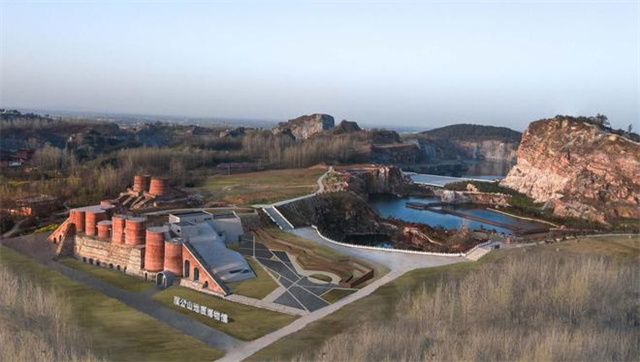 設計師將新建博物館與既存石灰窯整合在一起,將延綿的舊窯群整體作為地質公園的標志性大門,窯頂被改造為觀景平臺,其中一個舊窯的出灰口被設置為博物館的主入口,保留的一個送料舊磚梯則“插入”博物館中,使得殘缺的礦坑、破舊的石膏窯及全新的博物館共同組成了一個有機的整體。