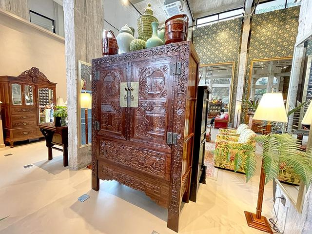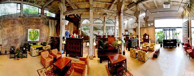 維波樓8號館的工作人員向記者講述了該館的故事。有一位美國博物館館長哈維先生,在深受中國民間家具藝術的感染后,與他的妻子姚小波老師,花了33年時間在中國各處收藏舊家具,對它們進行修復、翻新、二次創作。并開設了多家維波樓博物館,用來展示這些年來他們的成品。在一次機緣巧合下,九灃時尚企業董事長王倍林女士接觸到該家具文化后,深受感觸,向哈維夫婦收藏了大量家具,最終在石樓鎮蓮花山開設了維波樓8號館。“說起選址,王倍林費盡了心思,她找了很多處地方都覺得不合適,直至來到蓮花山腳下。