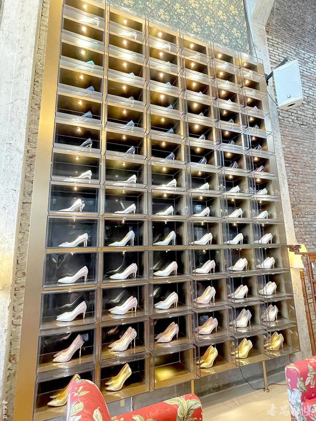 記者獲悉,館內除了擺設了哈維夫婦歷年來的作品外,還有一個大型的玻璃鞋柜,里面擺放著多雙不同風格類型的高跟鞋。“王倍林原來是一名從事了二十多年鞋類行業的工作者,多年來她設計了多款婚鞋,她希望能將婚鞋元素融入到博物館里,因此我們也從過往設計過的鞋子中,選擇了跟高9.5厘米且最有代表性的高跟鞋,放在了架子上。”工作人員回答道。
