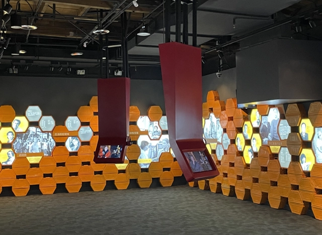 您知道這些橘黃色的盒子是什么嗎?長(zhǎng)影舊址博物館利用電影中最常見(jiàn)的膠片盒,沿墻面擺放,改造為燈箱。膠片盒本身的亮麗橘色,形成該區(qū)域的整體色彩氛圍。改造后的燈箱,仿佛是一個(gè)個(gè)嬌嫩的蜂巢,夠創(chuàng)意吧?