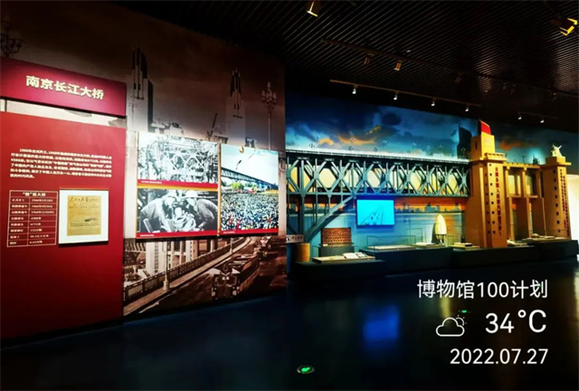 以南京人的視覺,通過長江掠影全景畫、大橋模型等比例縮比復原、南京長江大橋專題影片、陣列排放的大橋建橋時的文物實物,立體化展現了社會主義建設時期的偉大成就——南京長江大橋。