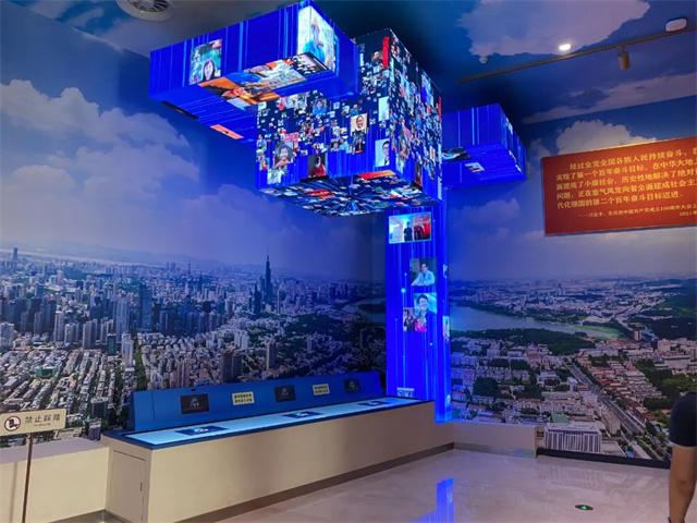 藝術手法展覽設計中從主題、內容、精神、空間、體驗、形式等多方面綜合表達,打造出一座藝術性的表現空間,以“聲、光、影、物”設計概念重織時空、展示文物、講述黨史、展望未來,給觀者以全新的體驗空間。