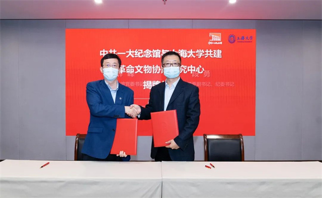 紀念館與上海大學共建革命文物協同研究中心揭牌儀式在中共一大紀念館舉行。中共上海市教衛工作黨委副書記、市教委主任王平,上海大學黨委書記成旦紅,中共一大紀念館黨委書記、館長薛峰,上海大學黨委副書記、紀委書記段勇以及上海大學、中共二大會址紀念館、中共四大紀念館的嘉賓出席儀式。