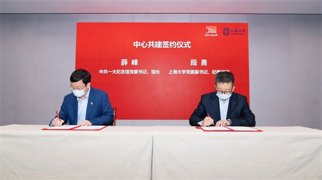 中共一大紀念館黨委書記、館長薛峰與上海大學黨委副書記、紀委書記段勇簽署共建革命文物協同研究中心協議。雙方將聚焦革命文物保護、闡釋、利用與傳播等發展方向,開展全面合作。