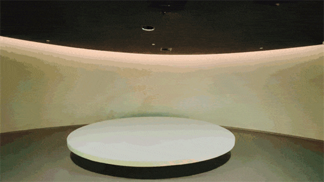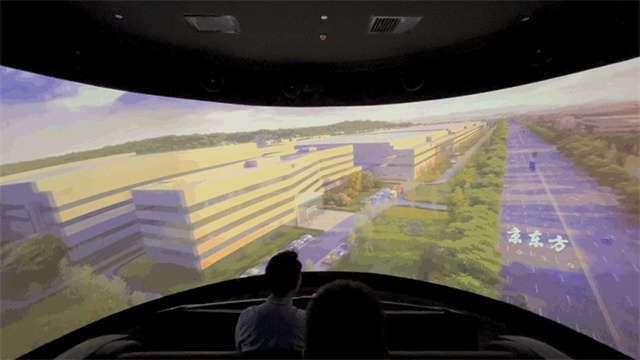 城市標識看似是將顯示屏幕一分為二,但隨著工作人員手指一動,兩側便會緩緩推出兩塊小屏幕,繼而形成一整塊大屏,為參觀者提供了一份絕佳的觀影體驗。
